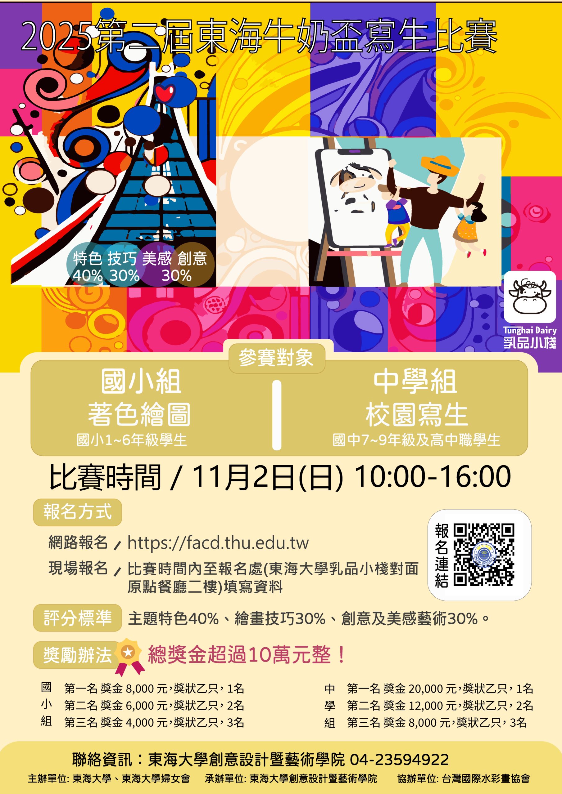四、比賽資訊及線上報名連結請見本校創意設計暨藝術學院網站公告 https://facd.thu.edu.tw 。