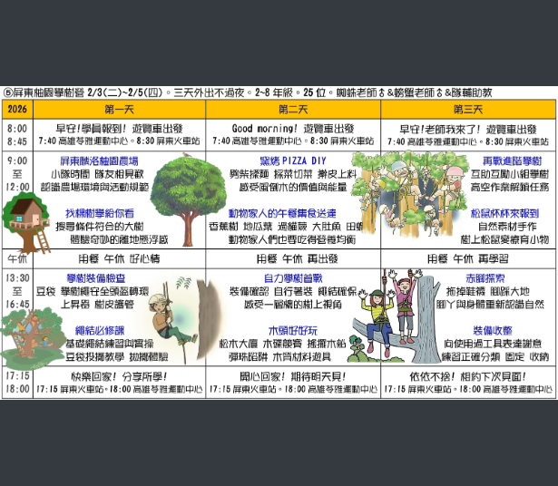 ⑤屏東柚園攀樹營(3天外出不過夜)、