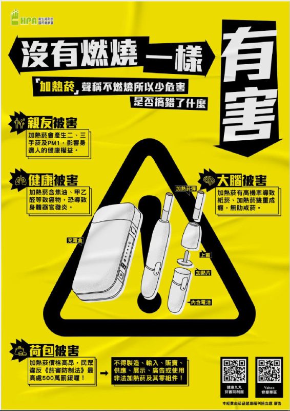 【轉知】加熱菸仍會對身體產生危害Post category:首頁公告區Post published:2025/10/02Post author:ntctcpstc033我國政府規定,未滿二十歲不得吸菸,所有菸草產品皆有害,不論是使用紙菸或加熱菸,都會產生相似的有毒化學物質。 Post Views: 17Read more articles上一篇文章【轉知】臺中市114學年度推動校園英語百閱「臺灣藍鵲雙語升級」線上認證活動獎勵辦法乙份,鼓勵學生積極參與。